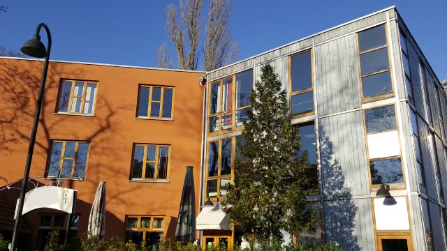 Fahrradparkplätze befinden sich direkt auf dem Gelände.